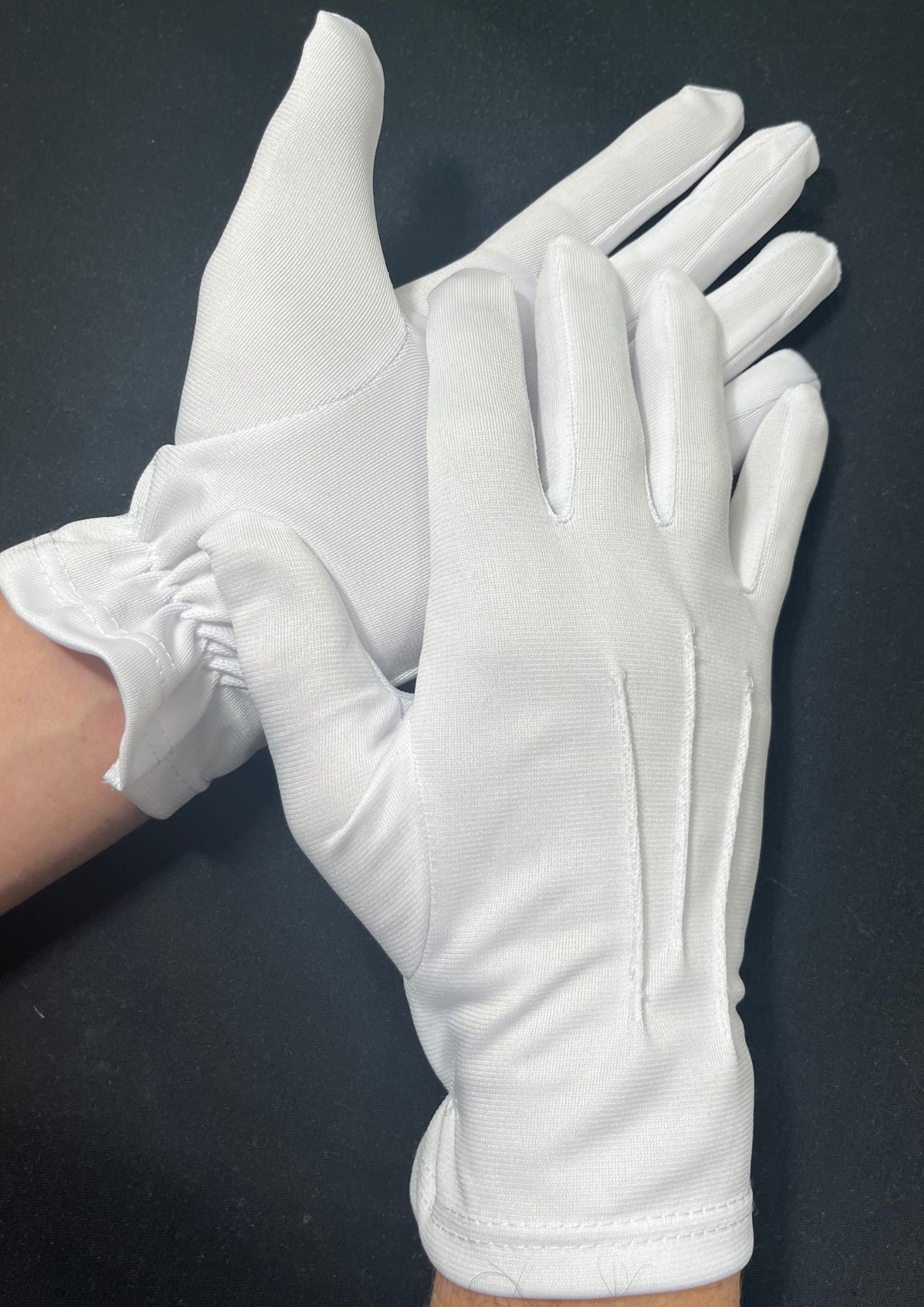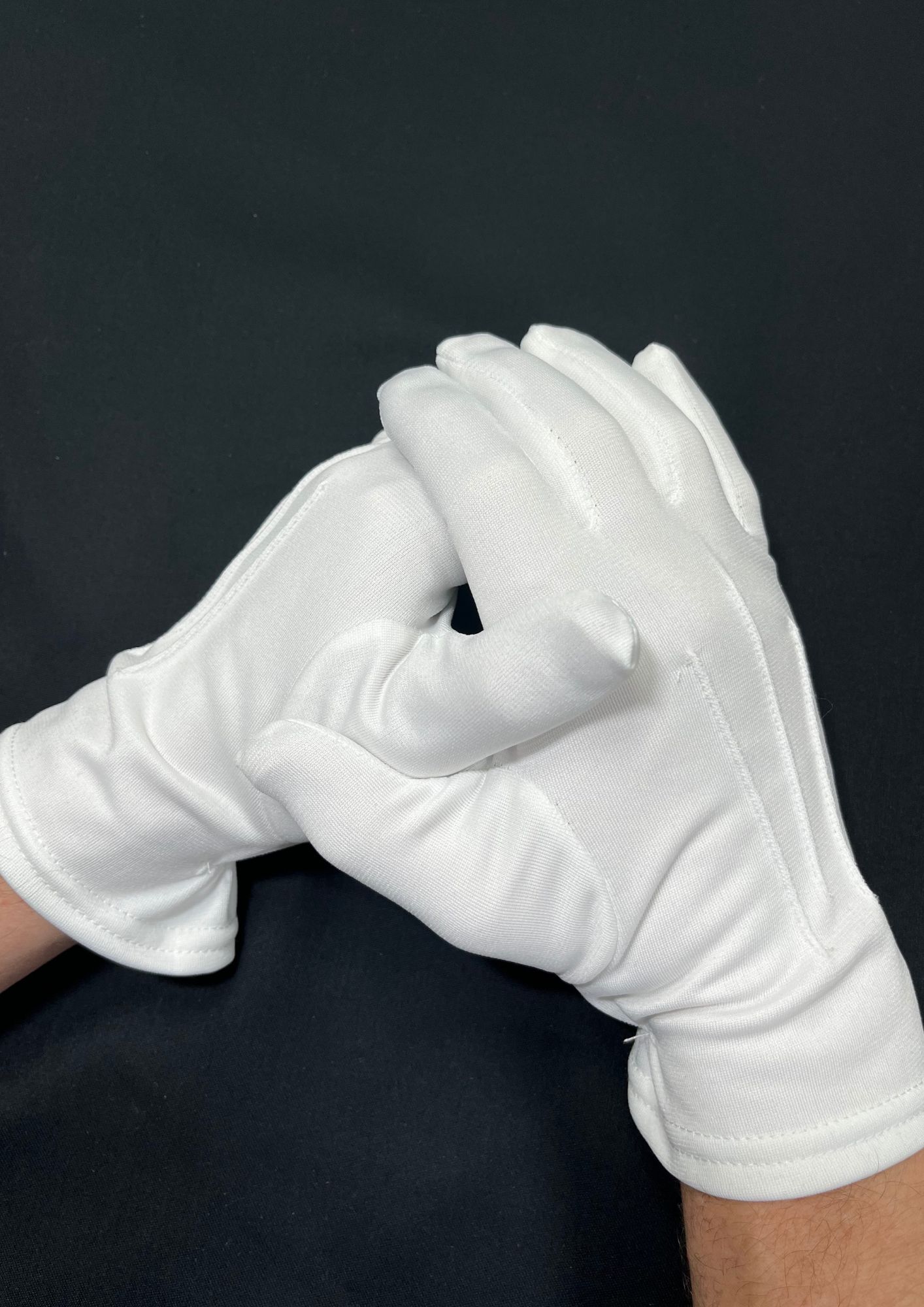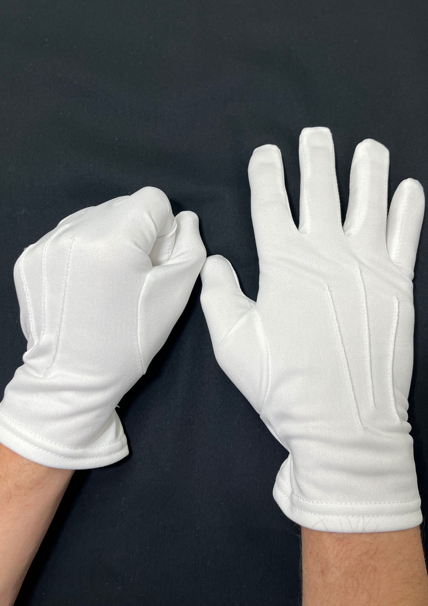 Парадные перчатки модели 102 изготовлены из прочного синтетического трикотажа, обеспечивающего аккуратный внешний вид и практичность при регулярном использовании.